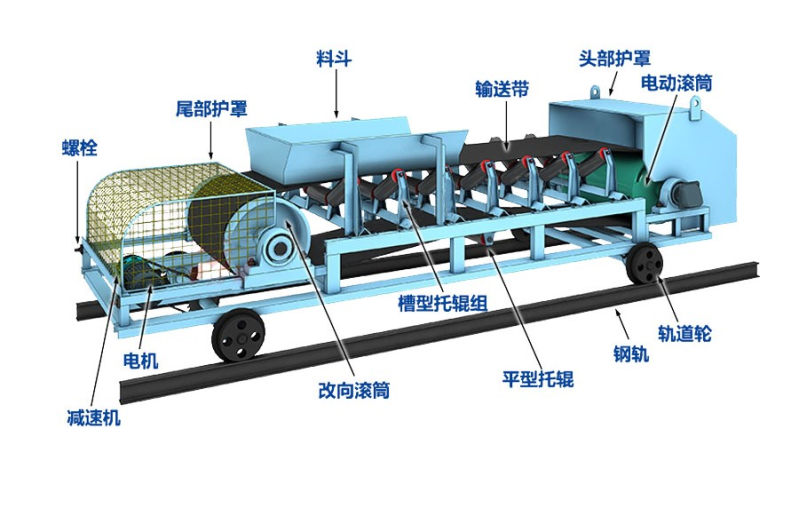 张紧装置用于保证输送带具有足够的张力,确保正常运行: